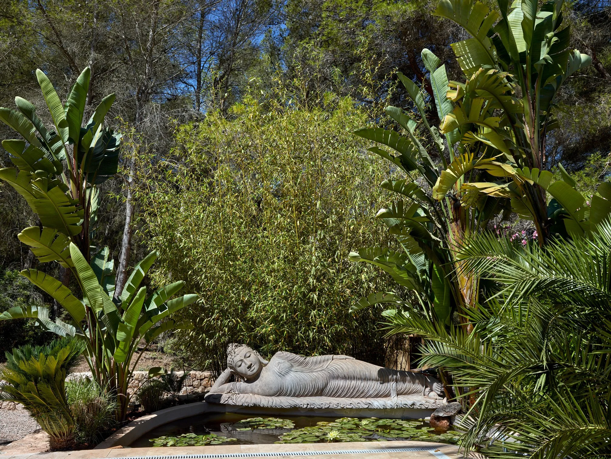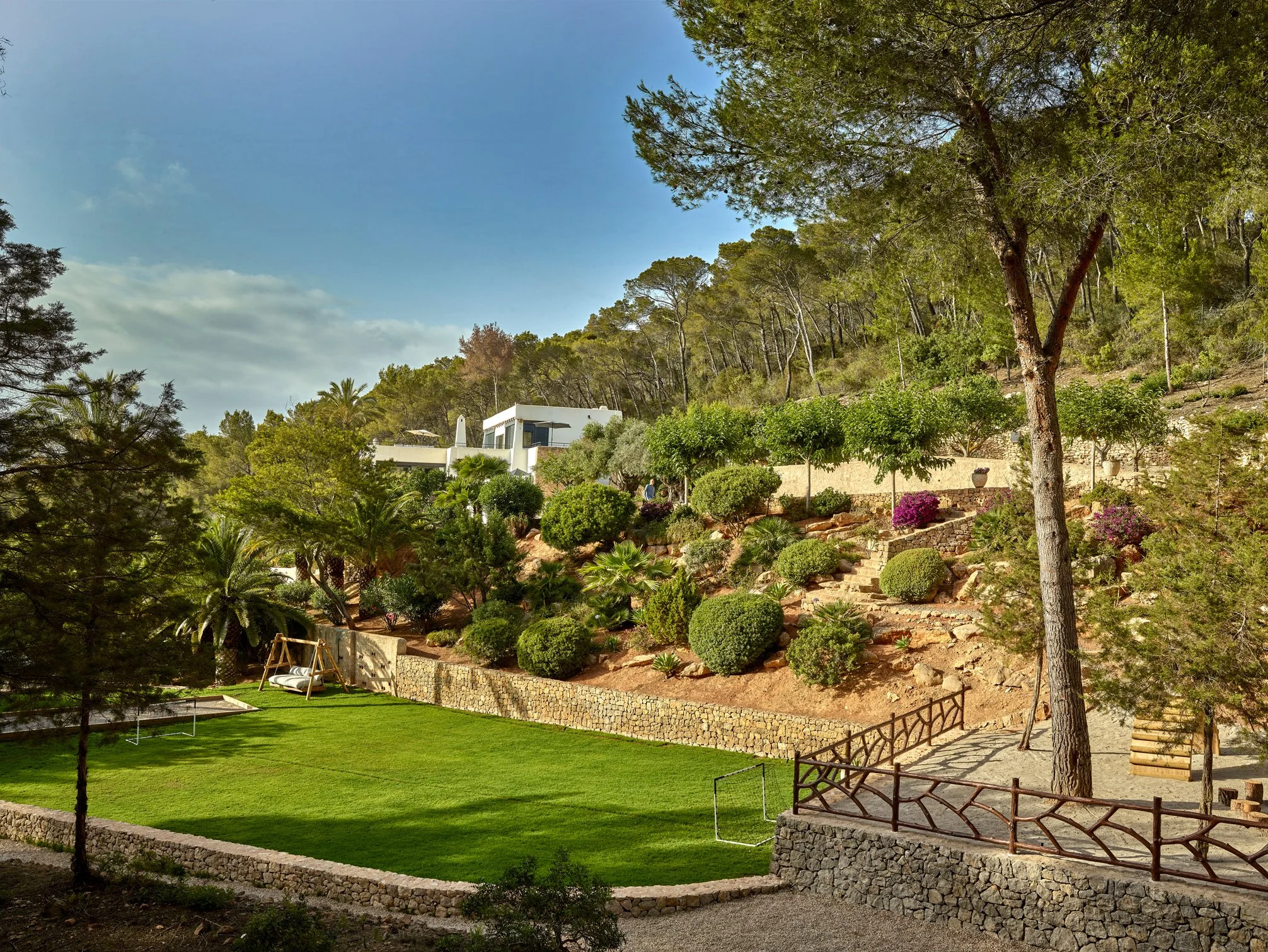 is located in the south-east of Ibiza, hidden in a scenic valley and covered by pine trees and Mediterranean fan palms. From here you have a fantastic panoramic view of the island with its hills and valleys. This villa is perfectly located to explore the whole Island. Within a few minutes, you can reach numerous lovely beaches and bays (e.g. Cala Llenya, Cala Llonga, Cala Olivera, Cala Martina, Cala Nova, Cala San Vicente). The estate belongs to the municipality of Santa Eulalia del Rio.
